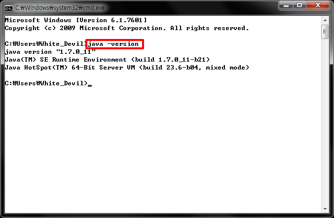 설치가 완료되면 cmd 창에서 'java -version'을 쳐서 아래 이미지 처럼 자바 버전에 대한 정보가 나오면 제대로 설치가 되었다.